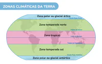 A zona tropical recebe luz direta, enquanto as zonas temperadas recebem raios inclinados.