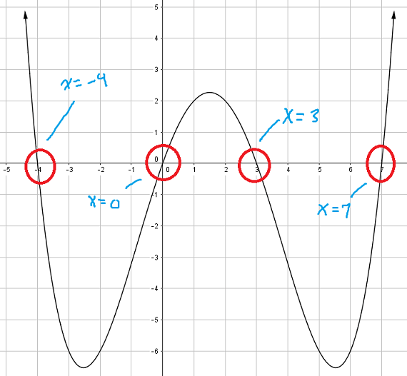 x = -4, x = -1, x = 1.