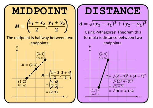 The midpoint M is given by the formula M = ((x1 + x2)/2, (y1 + y2)/2).