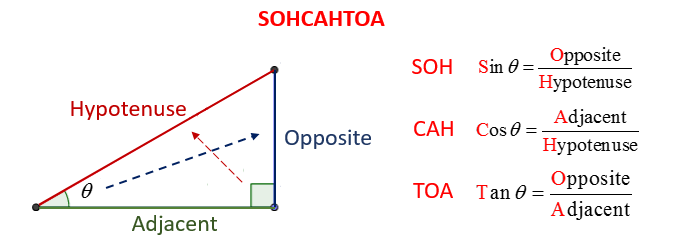 The sine function (sin) is a ratio of the length of the opposite side to the length of the hypotenuse in a right triangle.