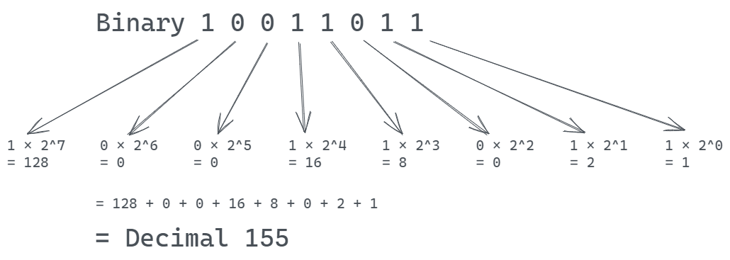 Decimal 5, binary 1011, decimal 12, binary 1101