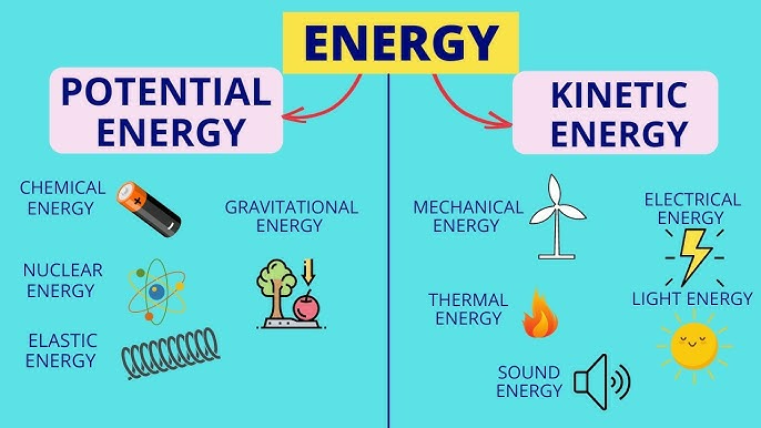 Potential energy is the stored energy in an object due to its position or state, such as a ball held at a height.