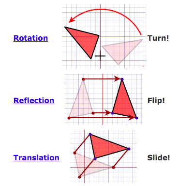 The shape is first flipped over the x-axis, then moved right by 4 units.