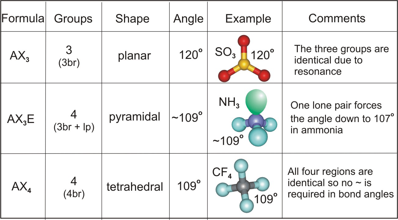What is the shape of a molecule with three bonding pairs and no lone pairs?