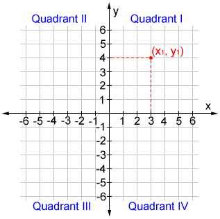 The four quadrants are: Quadrant I (x > 0, y > 0), Quadrant II (x < 0, y > 0), Quadrant III (x < 0, y < 0), Quadrant IV (x > 0, y < 0).
