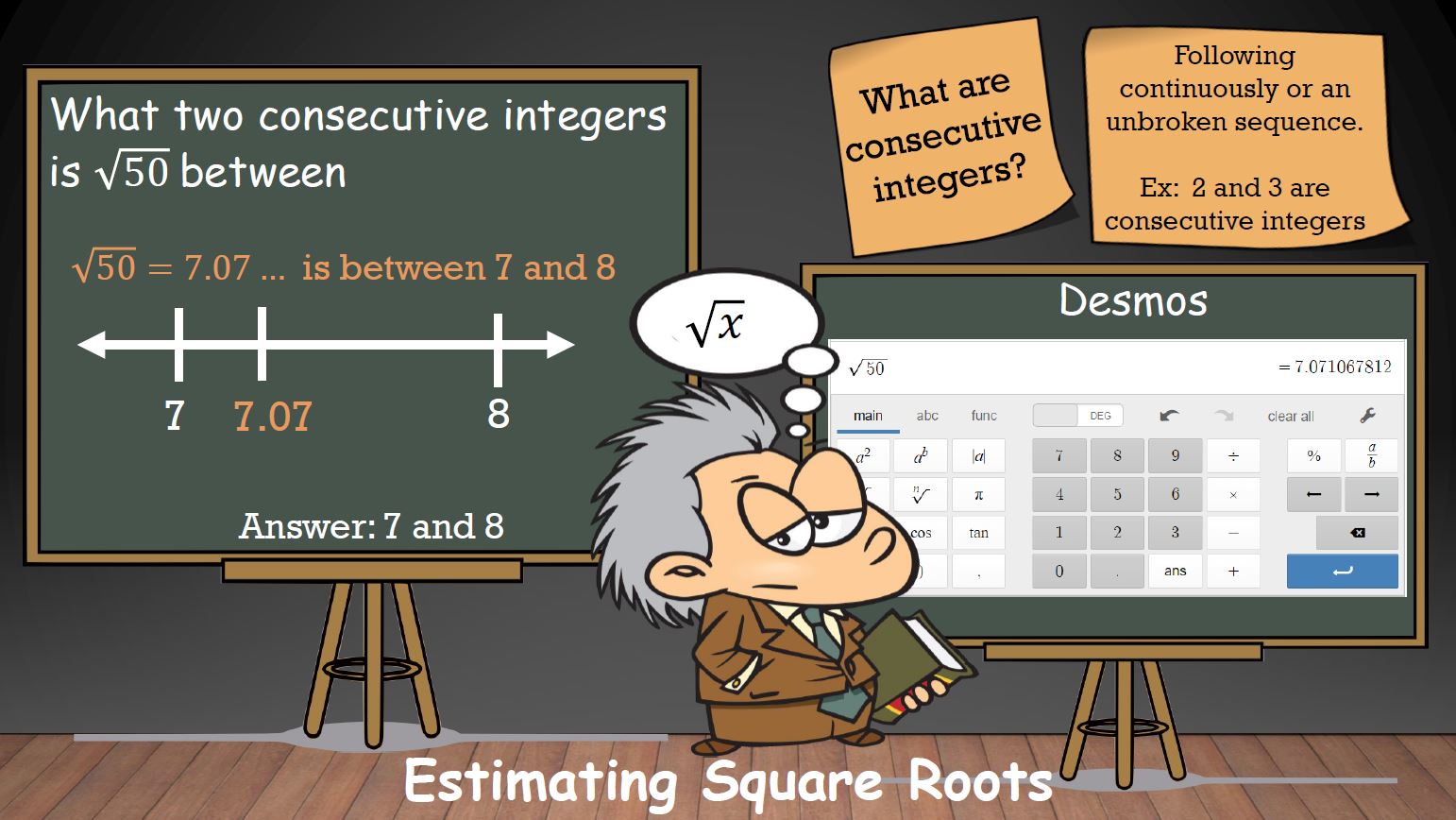 How do you find two consecutive integers that a square root lies between?
