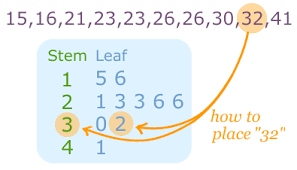 The 'leaf' represents the trailing digit(s) of the data values.