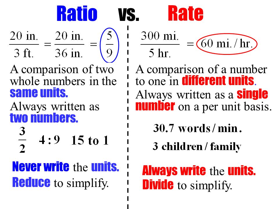 A rate is a ratio that compares two quantities with different units.