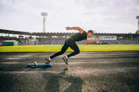 Lomba lari jarak pendek menggunakan start ...
