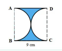 Beth yw perimedr y siâp yma, sydd wedi ei greu gan dynnu dau hanner cylch o sgwâr, i 2 le degol?