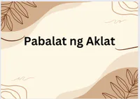 Ang isang mahalagang bahagi ng aklat ay ang ___. Ito ay nagtataglay ng pamagat ng aklat at mga larawan o grapikong representasyon ng disenyo ng pabalat. Nagsisilbi itong pang-akit sa mga mambabasa upang mahikayat na basahin ang aklat. An important part of the book is the ___. It contains the title of the book and images or graphic representations of the cover design. It acts as an attraction to the readers to encourage them to read the book.