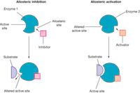 When regulating biochemical pathways, the binding of (a) to the allosteric site produces a change of shape in an enzyme that stops enzyme activity.