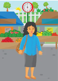 Miss Dina goes to market at six o'clock ...........