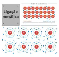 Nas ligações metálicas, os elétrons da última camada podem mover-se livremente entre os diversos átomos ligados.