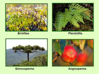 BRIÓFITAS / PTERIDÓFITAS / GIMNOSPERMAS / ANGIOSPERMAS