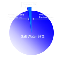 Of all the earth’s water, how much is ocean or seas?