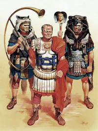 O exército romano dividia-se em legiões (unidades militares de cerca de três mil infantes). Eram comandadas no mais alto nível pelos cônsules e pelos pretores, chamados de generais.