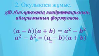 4. a2-b2=(a-b)(a+b) өрнегі қалай аталады?