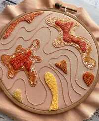 hiasan yang dibuat di atas kain atau bahan- bahan lain dengan jarum jahit dan benang dengan menggunakan payet atau manik-manik.