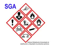 una imagen en una etiqueta que incluye un símbolo de advertencia y colores especí́ficos que informan sobre peligros es: