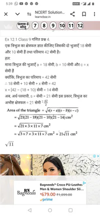 त्रिभुज का क्षेत्रफल ज्ञात करने के लिए कौन सा सूत्र उपयोग किया गया है?