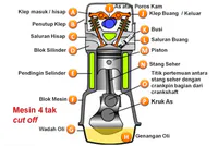 Mesin 4 langkah beroperasi dengan langkah hisap, pembakaran, dan pengeluaran.