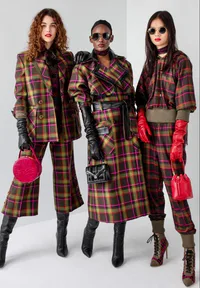 Siluet busana yang memiliki pusat perhatian pada bagian bahu seperti bentuk ruffle, kerah dengan model yang besar, dan bagian badan ke bawah berbentuk slim, merupakan siluet ...