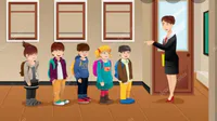 Seorang guru meminta anak untuk lomba lari bersama kawannya. Mereka berlomba untuk sampai ke tembok berwarna kuning yang ada dihadapan mereka.