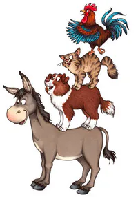 Esel, Hund, Katze und Hahn
