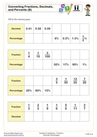 Convert Fraction, Decimals, and Percent