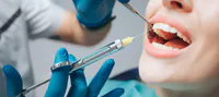 D) Anestesia en el ligamento periodontal con jeringa de presión controlada.