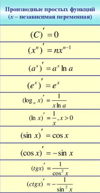 Формулы производных элементарных функций