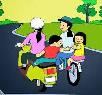 3. Khi được người lớn đèo bằng xe máy đi trên đường, con phải ngồi như thế nào cho an toàn?