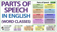 Identify four parts of speech.