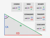 Seno = hipotenusa / cateto opuesto; Coseno = hipotenusa / cateto adyacente