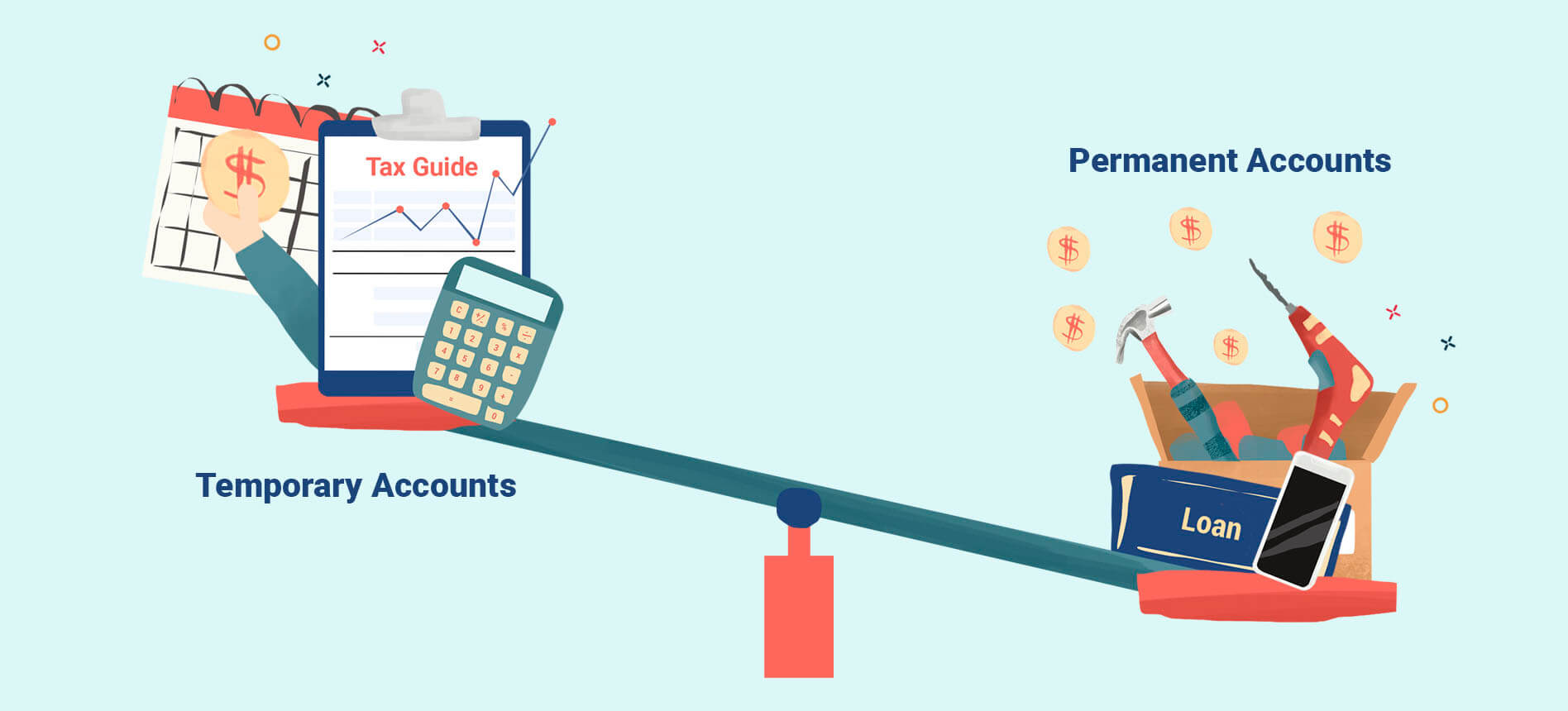 Temporary accounts include assets, expenses, and the owner’s drawing account.