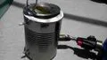 Small soup can forge melting zinc.