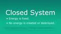 In a closed system, what happens to the energy?