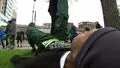 Runner doing stretches after race in Denver