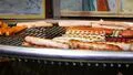 Bratwurst and kebabs on a BBQ grill