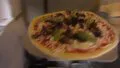 Pizzas being prepared and cooked in oven