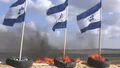Palestinian protesters burn Israeli flags in border area