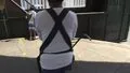What can be inferred from 'He casually yogas East logo.' regarding cultural influences?