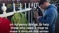 Warm for Winter charity hangs coats on Ha'penny Bridge