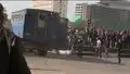 Protesters throw stones and bottles at security vehicles