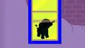 What is the animal in the purple window?