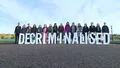 Pro choice campaigners holding "decriminalised" display