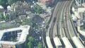 UK Rail strike - Aerials London empty tracks queuing traffic