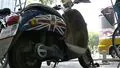 Traffic and Union Jacks in Beijing