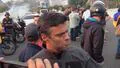 Activist Lopez talks to media outside air base